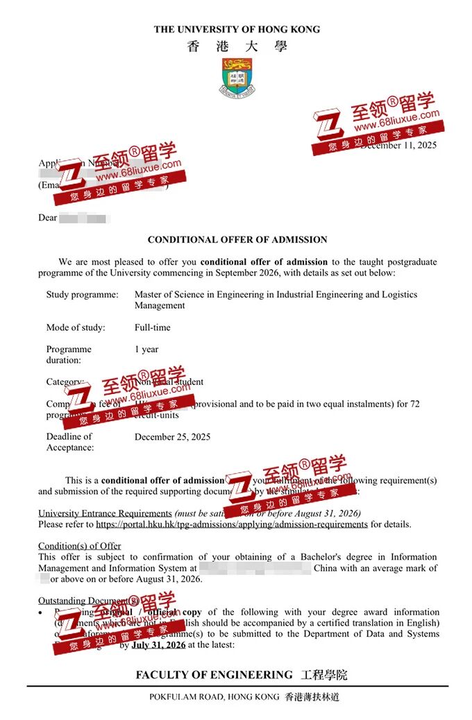 录取结果:香港大学,工业工程与物流管理硕士录取