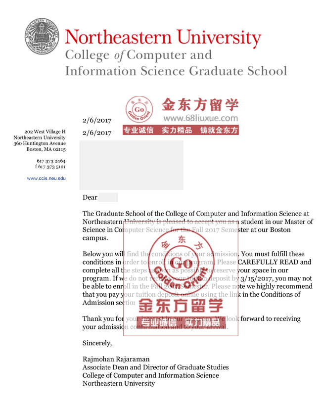 Northeastern University ,MS in Computer Science (东北大学计算机科学硕士录取)